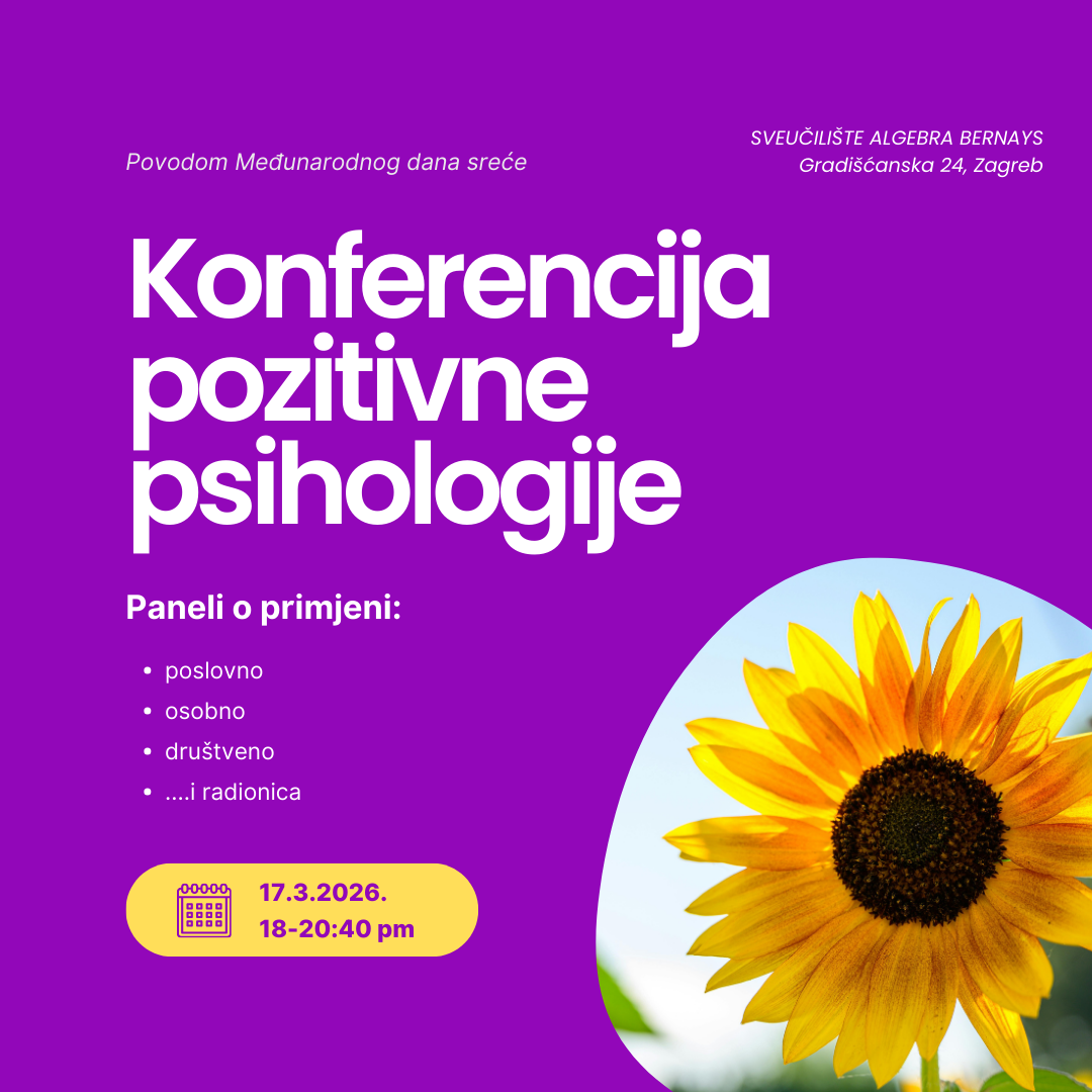 Konferencija pozitivne psihologije održat će se u Zagrebu 17.3. – namijenjena je svima koje zanimaju teme mentalnog zdravlja, osobnog razvoja i kvalitetnog života. O tim temama govorit će stručnjaci iz psihologije, odgojnih znanosti i biznisa. Događaj okuplja sudionike zainteresirane za znanstvene uvide o wellbeing-u (dobrobiti), otpornosti i osobnom razvoju u osobnom, poslovnom i društvenom kontekstu, svima koji koji žele bolje razumjeti kako znanstveni uvidi mogu pomoći u svakodnevnom životu.